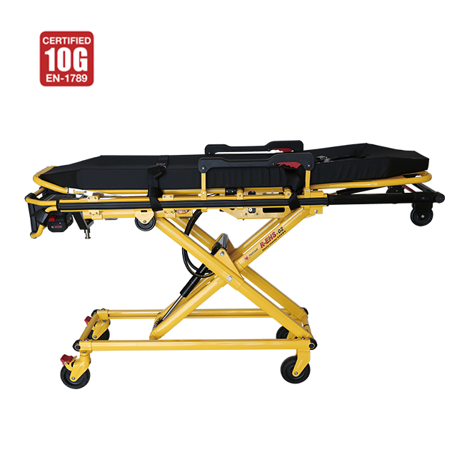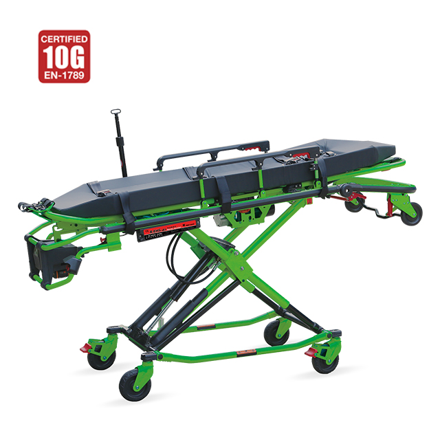 1. La camilla de ambulancia de altura ajustable se utiliza para que el transporte del paciente sea cómodo, y el paciente es transportado en la camilla y transportado por la ambulancia.